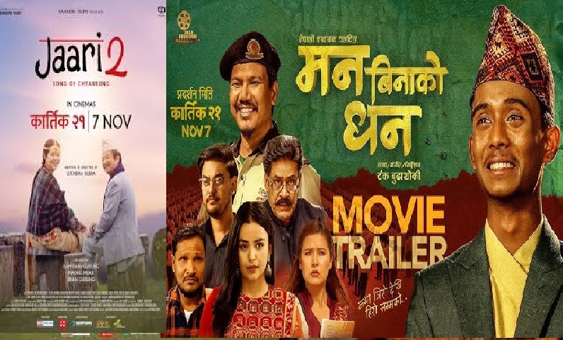काठमाडौँ, २१ कात्तिक : लिम्बू संस्कृति र सामाजिक सन्देश बोकेका दुई नेपाली चलचित्र ‘जारी २ : सङ अफ च्याब्रुङ’ र ‘मनबिनाको धन’ एकसाथ आजदेखि प्रदर्शन भएका छन् । यी दुवै चलचित्रले दर्शकलाई सांस्कृतिक उत्सव र जीवनका गहिरा कथाहरूको विकल्प प्रदान गर्दै विविधतालाई समृद्ध बनाउने अपेक्षा गरिएको छ ।
