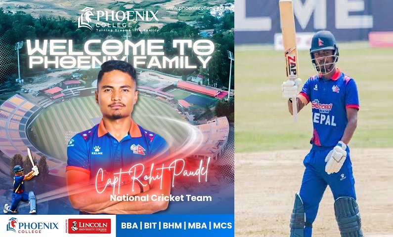 काठमाडौं, ४ मंसिर । नेपाली राष्ट्रिय क्रिकेट टोलीका कप्तान रोहितकुमार पौडेलले शैक्षिक यात्रालाई पनि सँगसँगै अघि बढाउने भएका छन्। पौडेल मैतिदेवीस्थित फिनिक्स कलेजमा भर्ना भएका छन् ।