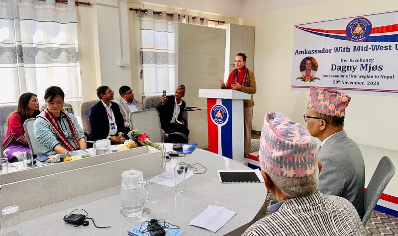 कर्णाली, ५ मङ्सिर : नेपालका लागि नर्वेका राजदूत डाग्नी म्योसले उच्च शिक्षा विकासमा नेपाल–नर्वेको सहकार्य निरन्तर हुने बताउनुभएको छ ।