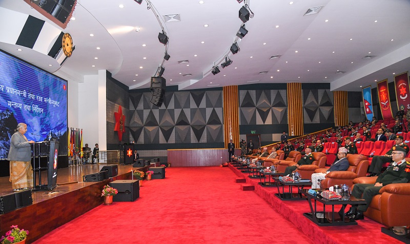 काठमाडौँ, १२ मङ्सिरः प्रधानमन्त्री सुशीला कार्कीले मुलुकमा शान्तिसुरक्षा बहाल गराई आगामी फागुन २१ गते हुने प्रतिनिधिसभा सदस्यको निर्वाचन सफलतापूर्वक सम्पन गर्ने काममा नेपाली सेनाको महत्वपूर्ण भूमिका रहेको बताउनुभएको छ ।