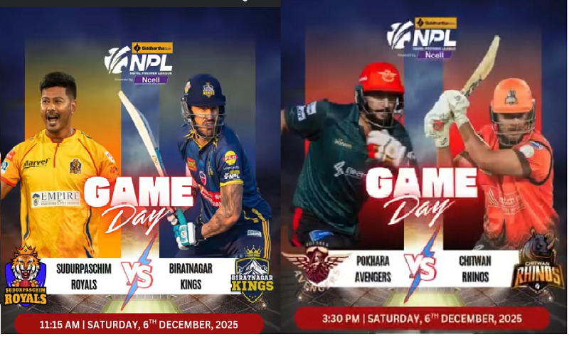 त्रिभुवन विश्वविद्यालय अन्तरराष्ट्रिय क्रिकेट रङ्गशालामा बिहान ११ः१५ बजे हुने पहिलो खेलमा सुदूरपश्चिम रोयल्स र विराटनगर किङ्ग्स भिड्दा दिउँसो ३ः३० बजे चितवन राइनोज र पोखरा एभेन्जर्स प्रतिस्पर्धा गर्नेछन् ।