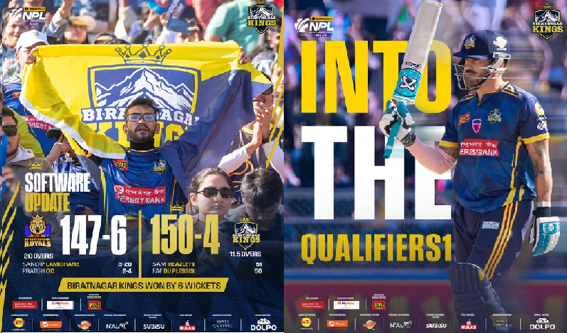 आजको खेलमा फाफ डु प्लेसी र सम हिजलेटको आक्रमक अर्धशतकमा विराटनगरकिंग्सले सुदूरपश्चिमको ६ खेलको अपराजित यात्रामा ब्रेक लगाइदिएको हो ।