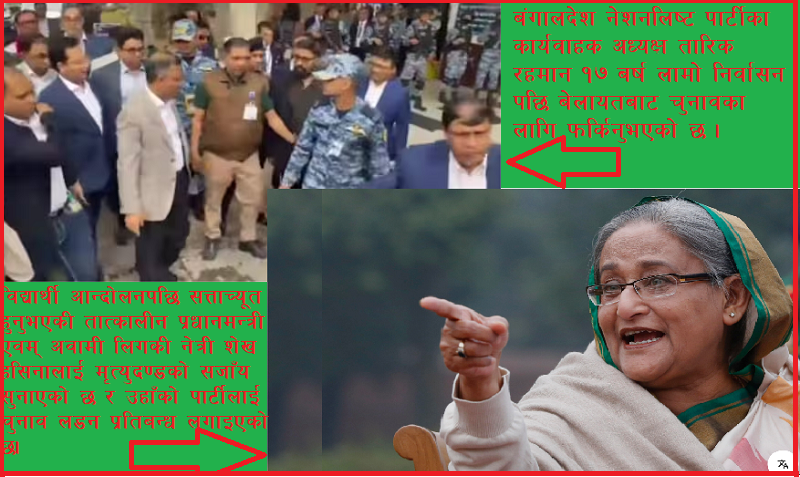 “अवामी लिगका गतिविधिमा प्रतिबन्ध लगाइएको छ र निर्वाचन आयोगले पार्टीको दर्ता रद्द गरिसकेको छ । त्यसैले अवामी लिगले आगामी निर्वाचनमा भाग लिन सक्ने छैन”, उहाँले भन्नुभयो ।