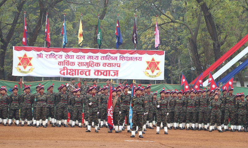 मध्यविन्दु (नवलपरासी), १० पुस : नेपाली सेना, राष्ट्रिय सेवा दलमार्फत दोस्रो चरणको सामूहिक क्याम्पमा २ हजार २ सय २० जना छात्रछात्रा दीक्षित भएका छन् । राष्ट्रिय सेवा दलमार्फत सञ्चालित ५१ औँ ब्याचको दोस्रो चरणको जुनियर डिभिजन एनसिसी तालिममा सहभागी विद्यार्थी दीक्षित भएका हुन् ।