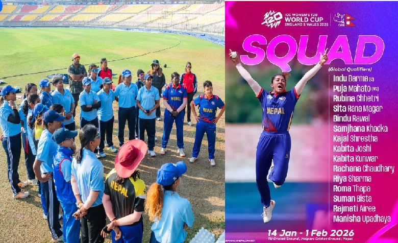काठमाडौँ, २० पुसः नेपाल क्रिकेट सङ्घ (क्यान)ले आइसिसी महिला टी–२० विश्वकप २०२६ को छनोट खेल्ने १५ सदस्यीय नेपाली टोलीको घोषणा गरेको छ ।