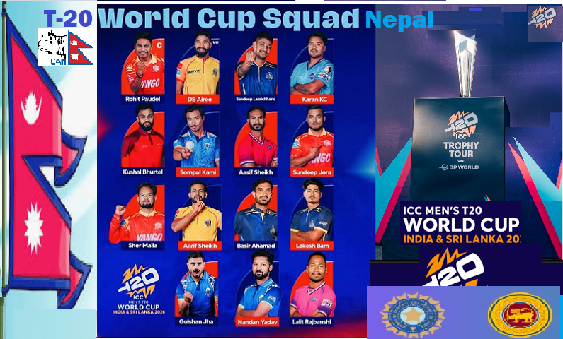 काठमाडौं, २२। नेपाल क्रिकेट संघ क्यानले आगामी महिना भारत र श्रीलंकामा आयोजना हुने आईसीसी टी २० विश्वकपमा खेल्ने राष्ट्रिय क्रिकेट टिमको घोषणा गरेको छ ।