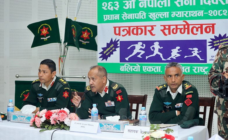 काठमाडौँ, १२ माघः यस वर्षको ‘प्रधान सेनापति खुल्ला म्याराथन दौड प्रतियोगिता’ यही माघ २४ गते हुने भएको छ । नेपाली सैनिक शारीरिक तालिम तथा खेलकुद केन्द्रद्वारा आइतबार सैनिक मुख्यालय भद्रकालीमा आयोजित पत्रकार सम्मेलनमा प्रतियोगिताका लागि यस वर्ष ‘बलियो एकता, सुरक्षित राष्ट्र’ भन्ने नारा तय गरिएको जानकारी दिइएको हो ।