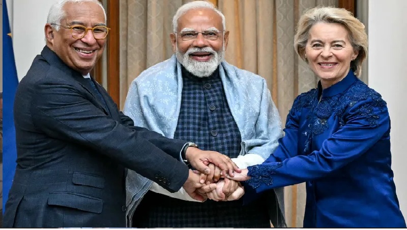 युरोपेली आयोगकी अध्यक्ष उर्सुला भोन डेर लेयन र युरोपेली परिषद्का अध्यक्ष एन्टोनियो कोस्टाले मङ्गलबार बिहान भारतका प्रधानमन्त्री नरेन्द्र मोदीसँग भेटवार्ता गर्नुभएको हो । प्रधानमन्त्री मोदीले सोमबार सम्पन्न भएको यो सम्झौताले विश्वका दुई प्रमुख अर्थतन्त्र—संयुक्त राज्य अमेरिका र चीन—बाट सिर्जित चुनौतीहरूको सामना गर्न भारत र इयु दुवैलाई सहयोग पुग्ने विश्वास व्यक्त गर्नुभएको छ ।