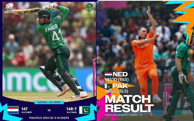 श्रीलंकामा भएको पहिलो खेलमा दबाबकाबीच पाकिस्तानले नेदरल्यान्ड्सलाई ३ विकेटले पराजित गरेको छ।
