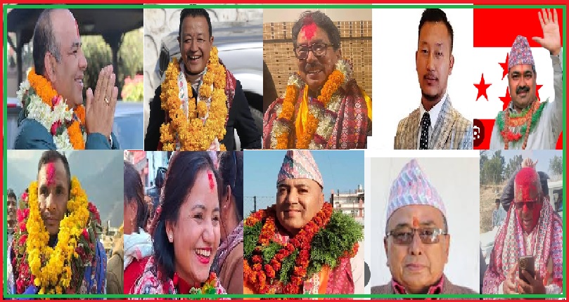 रसुवामा मोहन आचार्य, तेह्रथुममा सन्तोष सुब्बा, मनाङमा टेकबहादुर गुरूङ, मुस्ताङमा योगेश गौचन थकाली, कपिलवस्तुमा अभिषेकप्रताप शाह, जाजरकोटमा खडकबहादुर बुढा, दैलेखमा बासना थापा, सुर्खेत १ मा विष्णुबहादुर खड्का, अछाम १ मा भरतकुमार स्वार र डोटीमा भरतबहादुर खड्काले निर्वाचन जित्नुभएको हो।